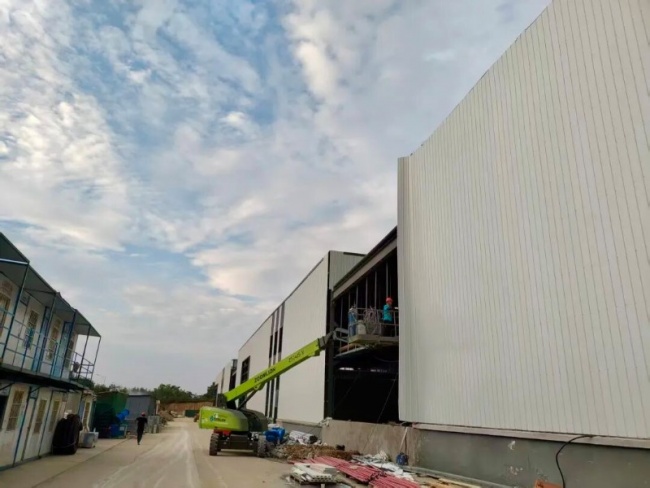 在仁善二期标准厂房建设现场,记者看到,工人们各司其职、加紧施工,一片忙碌的施工景象。项目负责人透露,目前厂房主体工程已全面完工,墙体钢板与屋面板安装